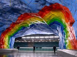 Swedish art in the stockholm metro stations. These do however form seven actual routes with different termini. With art in 90 out of its 100 stations created by over hundred different artists this art display is something out of the ordinary. Many of the subway stations of Stockholm are filled with art you can take a guided tour to explore it.